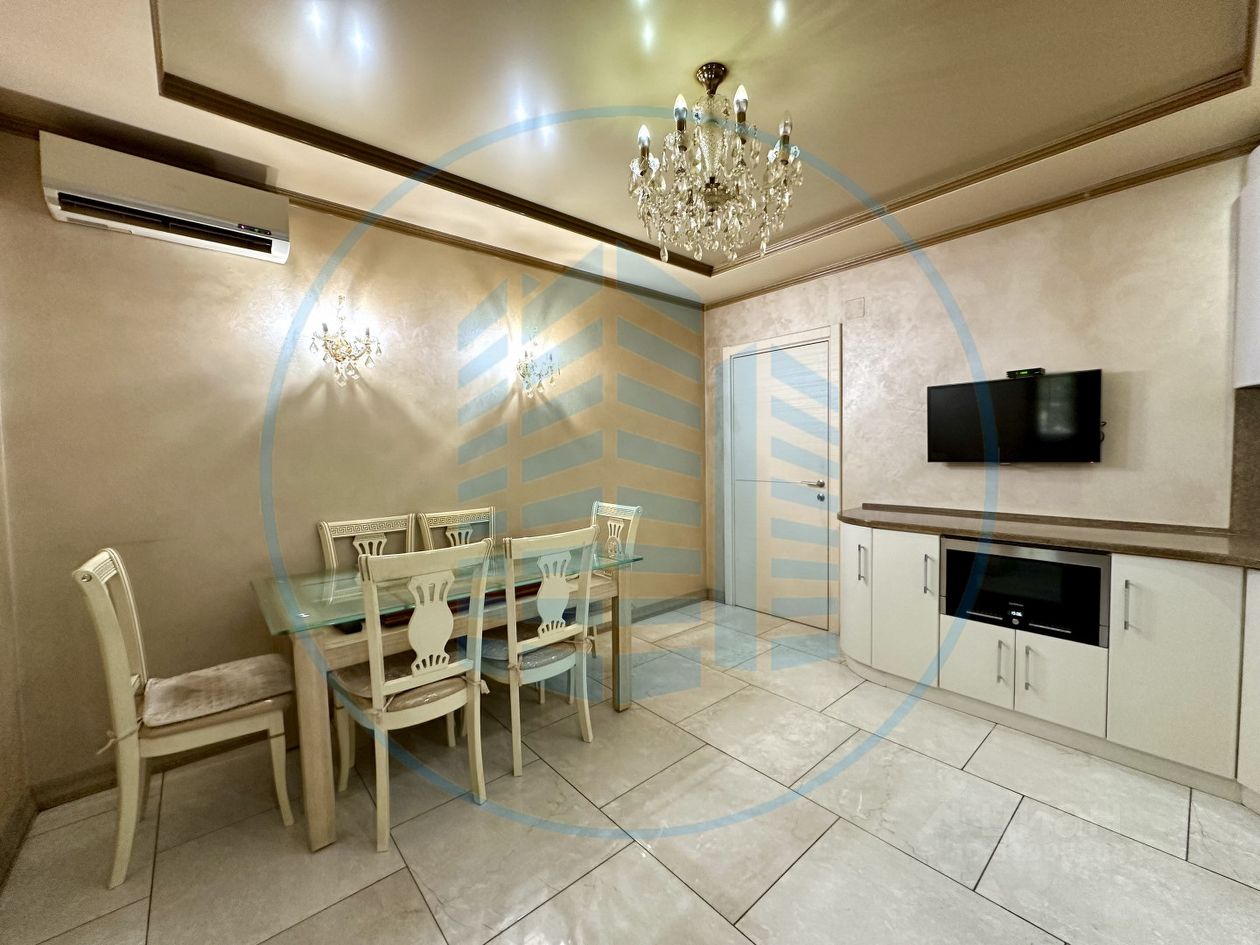 Выполнен ремонт: напольное покрытие керамогранит, потолки гипсокартон с большим количеством светового оборудования люстры и точечные светильники, стены покрыты декоративной венецианской штукатуркой, установлены кондиционеры, сан/узел оснащен всем необходимым;