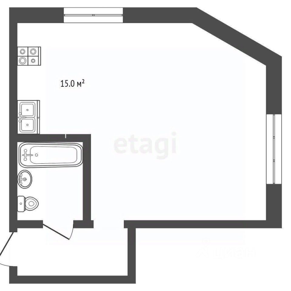 Студия в черновой отделке, что позволяет сделать ремонт по Вашему вкусу и желанию.