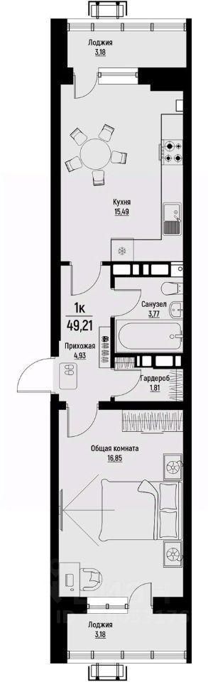 Общая площадь49,21 м²
