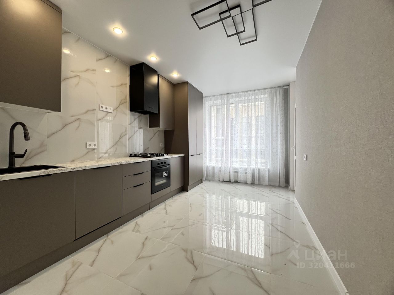 на полу крупноформатный керамогранит и ламинат