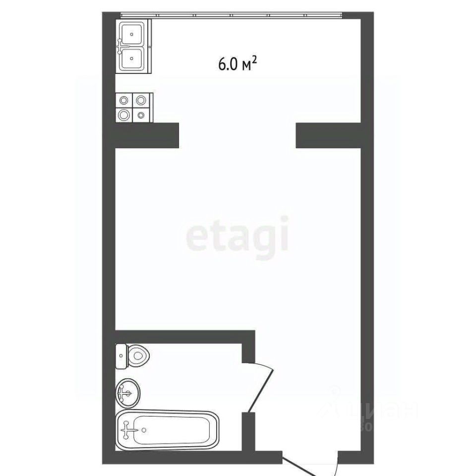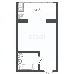 * Планировка: Продуманное зонирование с кухонной зоной (6 кв.м.), жилой комнатой и совмещенным санузлом.