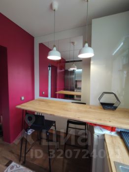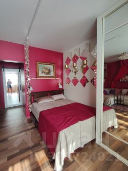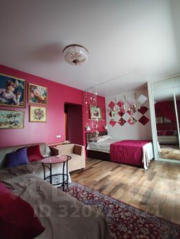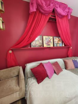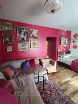 Квартира однокомнатная, но создается впечатление что комнат несколько, так как оформлена с зонированием спальни, гостиной, рабочего творческого кабинета и лаундж зоны.
