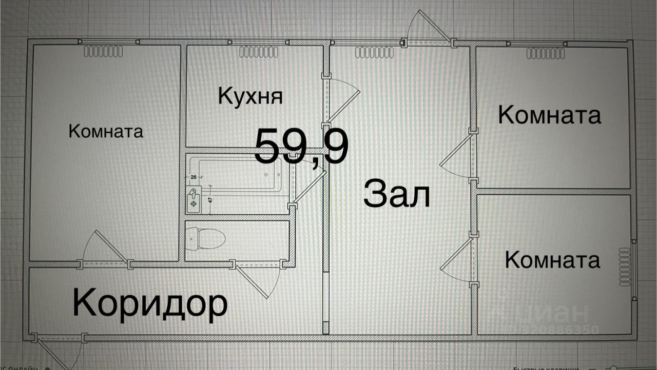 Планировка : прихожая, раздельный санузел. Комнаты раздельные ,зал общий с выходом на балкон (застеклен) . Кухня.