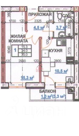 15,3 м²