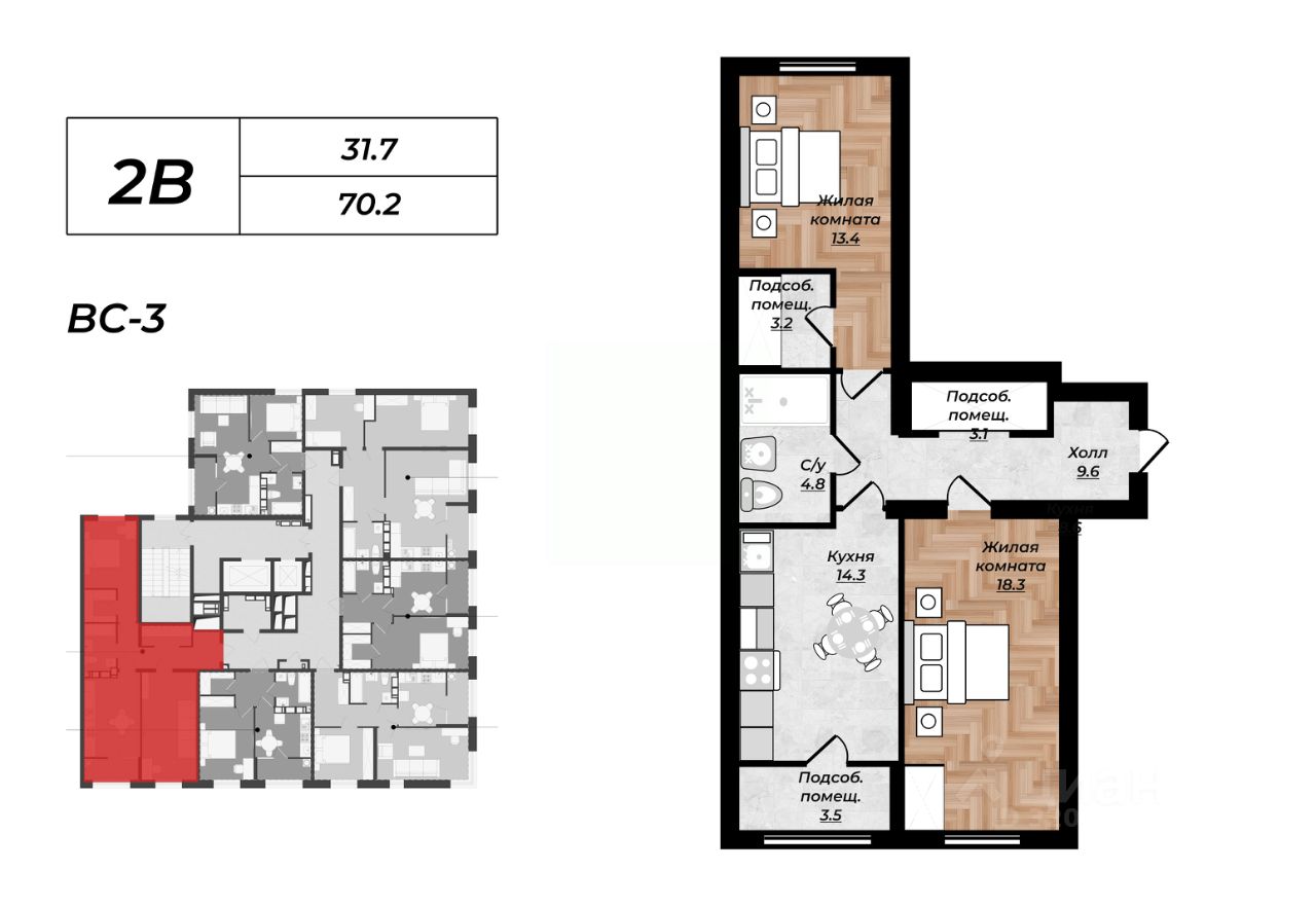 Общая площадь70,2 м²