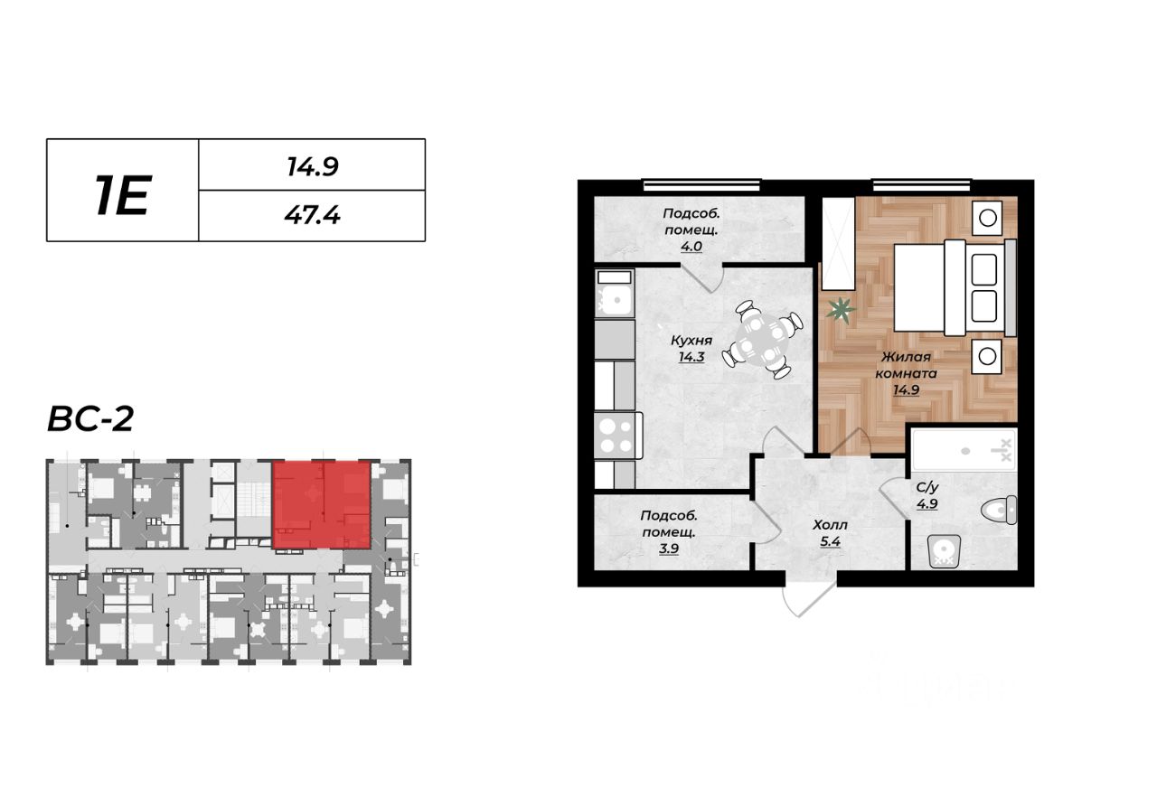 Общая площадь47,4 м²