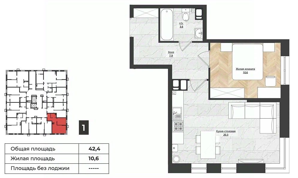 Общая площадь42,4 м²