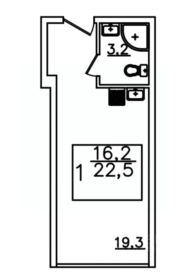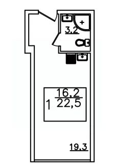 Продаётся 1-комнатная квартира в строящемся доме (Дом 1), срок сдачи: I-кв. 2026, общей площадью 22.5 кв.м., на 2 этаже.