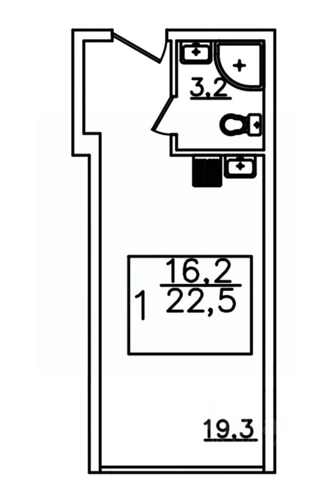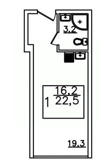 Продаётся 1-комнатная квартира в строящемся доме (Дом 1), срок сдачи: I-кв. 2026, общей площадью 22.5 кв.м., на 3 этаже.