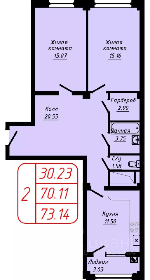 Продаётся 2-комнатная квартира в строящемся доме (Секции 6-10), срок сдачи: II-кв. 2028, общей площадью 73.14 кв.м., на 6 этаже.