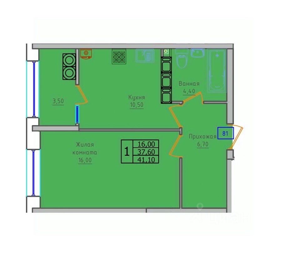 Общая площадь41,1 м²