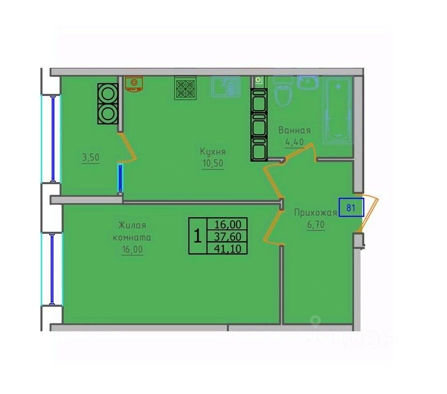 Общая площадь41,1 м²