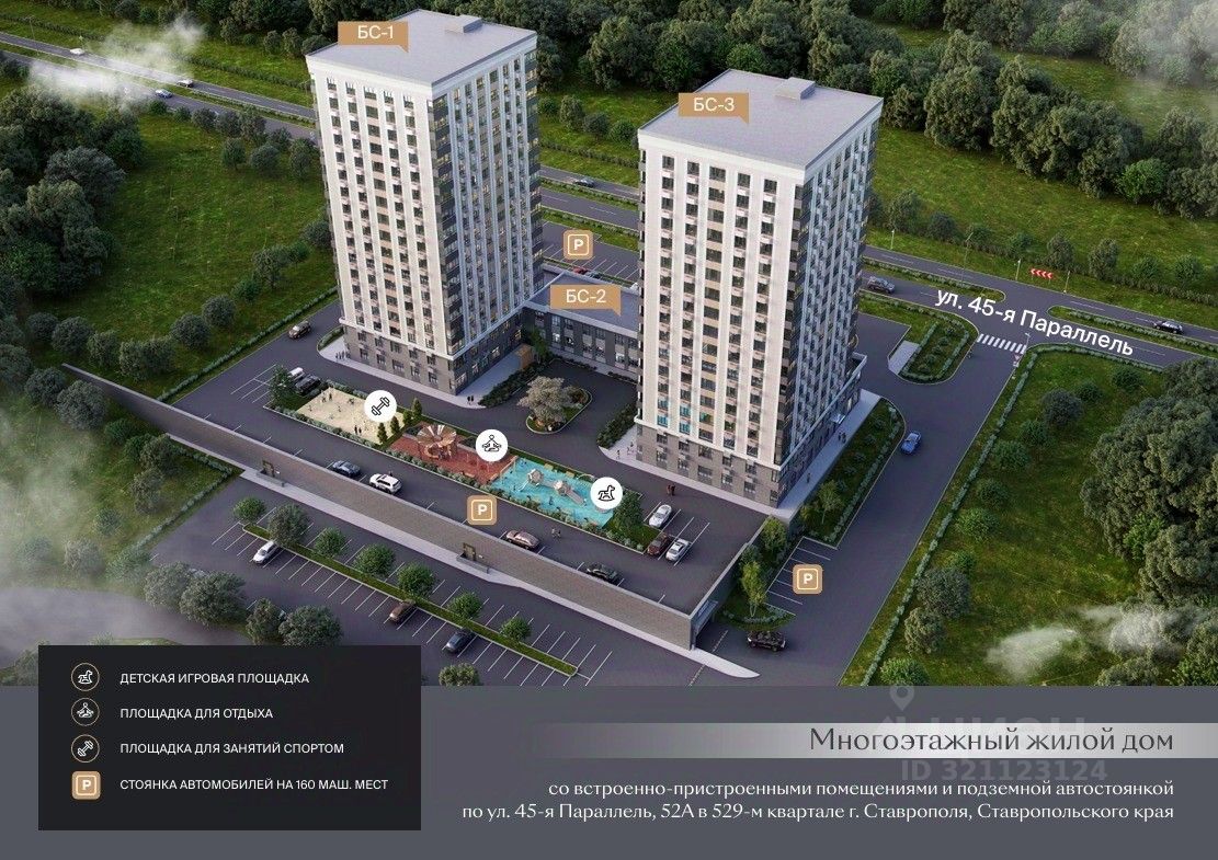ЖК "Настоящий" — современное пространство для комфортной жизни всей семьи. Комплекс строится по новейшим технологиям: эргономичные планировки, энергоэффективные панорамные окна, отделка white box, индивидуальное отопление и система "Умный дом", которая делает жизнь безопаснее и удобнее. Территория для жизни Территория закрыта от посторонних и продумана до мелочей: уютные зоны отдыха для взрослых современные детские и спортивные площадки зелёные газоны, клумбы, декоративные деревья внутренние проезды и дорожки с твёрдым покрытием Лифты спускаются прямо в подземный паркинг на 70 машиномест — вам не придётся выходить на улицу в непогоду. Локация и инфраструктура ЖК расположен в востребованном Юго-Западном районе Ставрополя, на красной линии. Удобная транспортная развязка, в шаговой доступности остановки общественного транспорта. рядом школа и детский сад — всё необходимое для семьи зелёный сквер в пешей доступности для прогулок и отдыха Характеристики комплекса Два 18-этажных дома, всего 278 квартир Потолки — 2,75 м Современные инженерные системы и вентилируемые фасады Панорамное остекление с энергоэффективными стеклопакетами Эргономичные планировки для разных потребностей Условия покупки Предлагаются максимально гибкие варианты: наличный расчёт ипотека с господдержкой (включая семейную, военную, IT-ипотеку) использование материнского капитала Срок сдачи комплекса — 3 квартал 2027 года. Успейте купить по выгодной цене! Приобретайте квартиру напрямую от застройщика — без переплат, на выгодных условиях. Самые привлекательные цены — на этапе строительства. Уточняйте наличие свободных квартир по телефону.