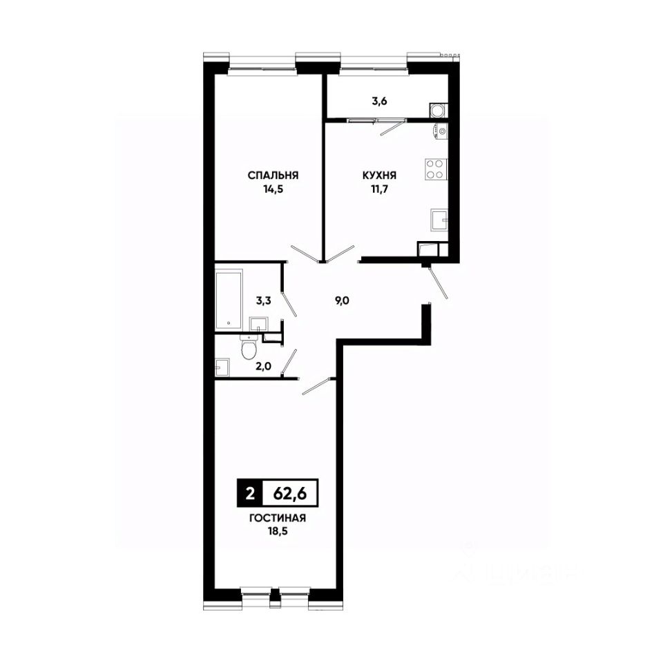 Общая площадь62,6 м²