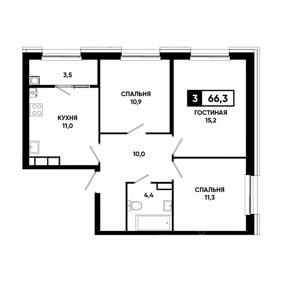 Общая площадь66,3 м²