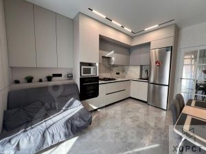 - в квартире выполнен качественный ремонт по индивидуальному дизайнерскому проекту. Просторная кухня со встроенной мебелью и техникой и выходом на лоджию с панорамным остеклением, спальня с вместительной гардеробной, детская комната, поделена на две зоны, раздельный с/у и просторный коридор. Также в наличии имеется кладовка 6.3 м2, на полу плитка, проведено освещение.