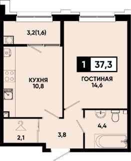 Общая площадь37,3 м²