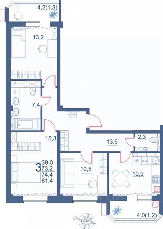 3х комнатная квартира. Лучшая планировка. Очень функциональная.На 2 стороны расположена квартира. Вид на гору и на реку! Монолитно кирпичный дом. Отсутствие несущих перегородок.