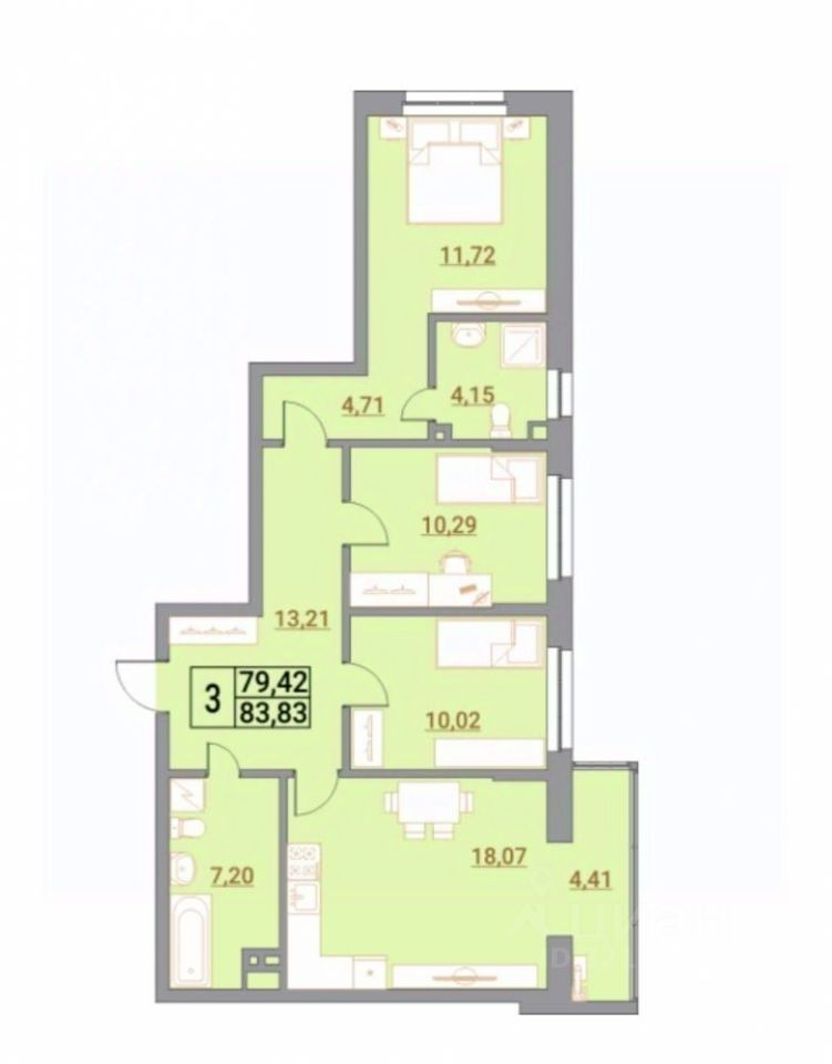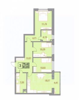 Продаётся трёхкомнатная квартира в кирпичном пятиэтажном доме.Общая площадь 83,34 м.кВ.