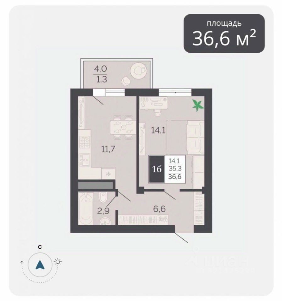 Квартира с индивидуальным отоплением и лоджией.