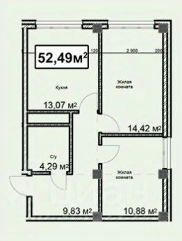 Общая площадь52,49 м²