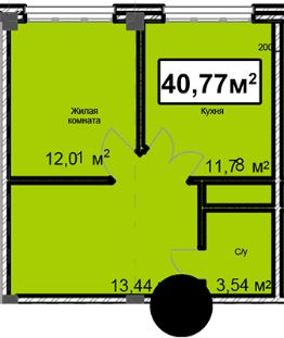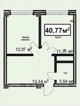 Общая площадь40,77 м²