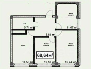 Общая площадь68,64 м²