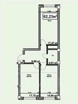Общая площадь62,23 м²