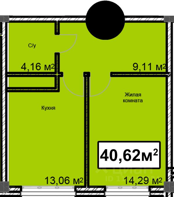 Общая площадь40,62 м²