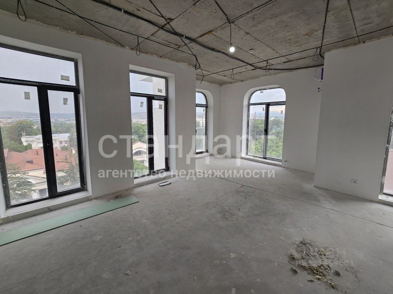 Квартира в предчистовом состоянии, сделан дизайн проект. Залита стяжка, сделана разводка электрики, стегы отшпатлевпны, установлены кондиционеры.В квартире два открытых балкона, один с выходом из спальни, второй с выходом из кухни, панорамное остекление, что делает квартиру более светлой и солнечной. Эксклюзивная планировка. Из окон прекрасный вид на Эльбрус, Машук, Бештау и всю парковую зону.