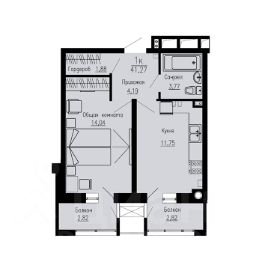 Общая площадь41,27 м²