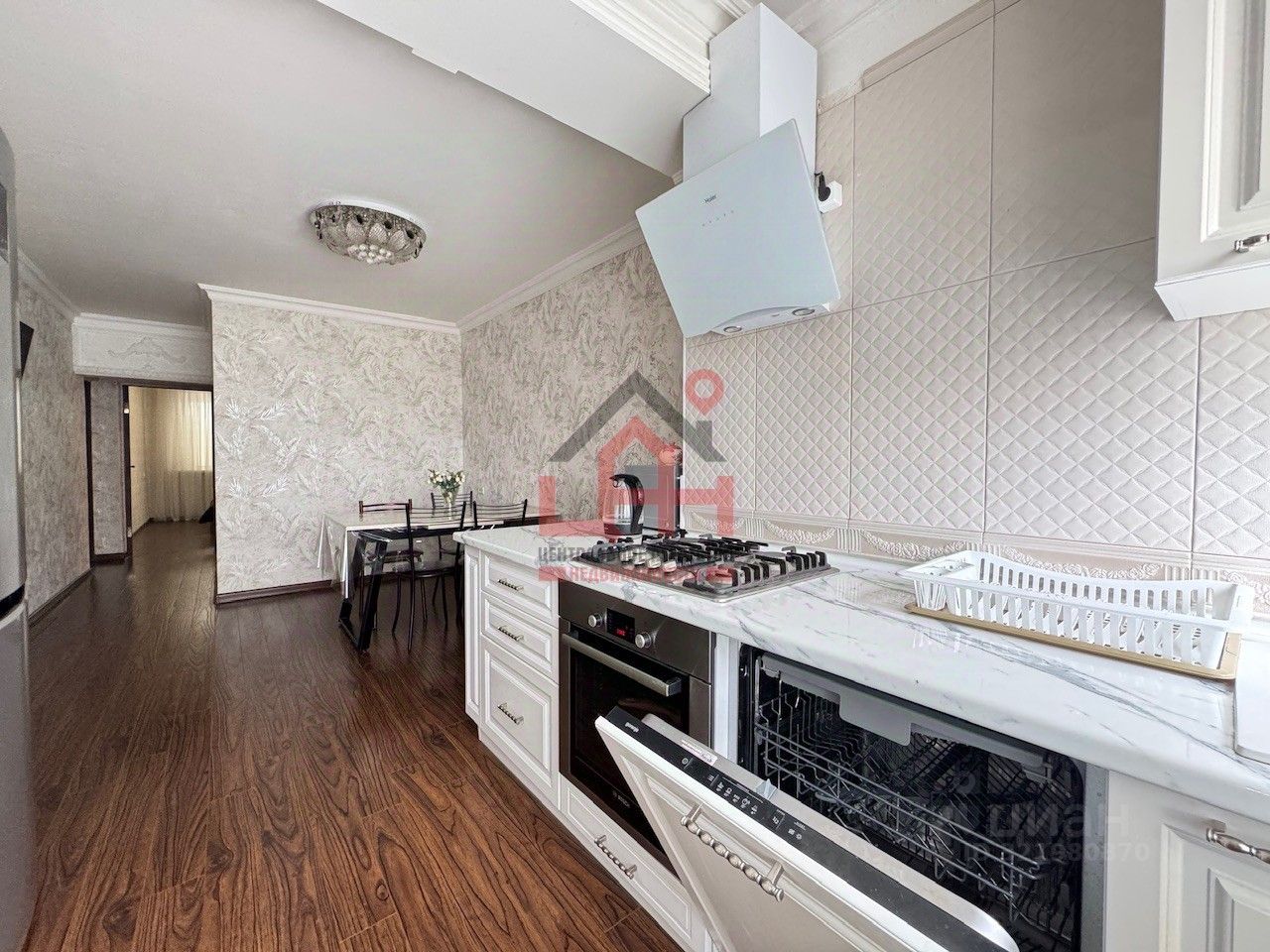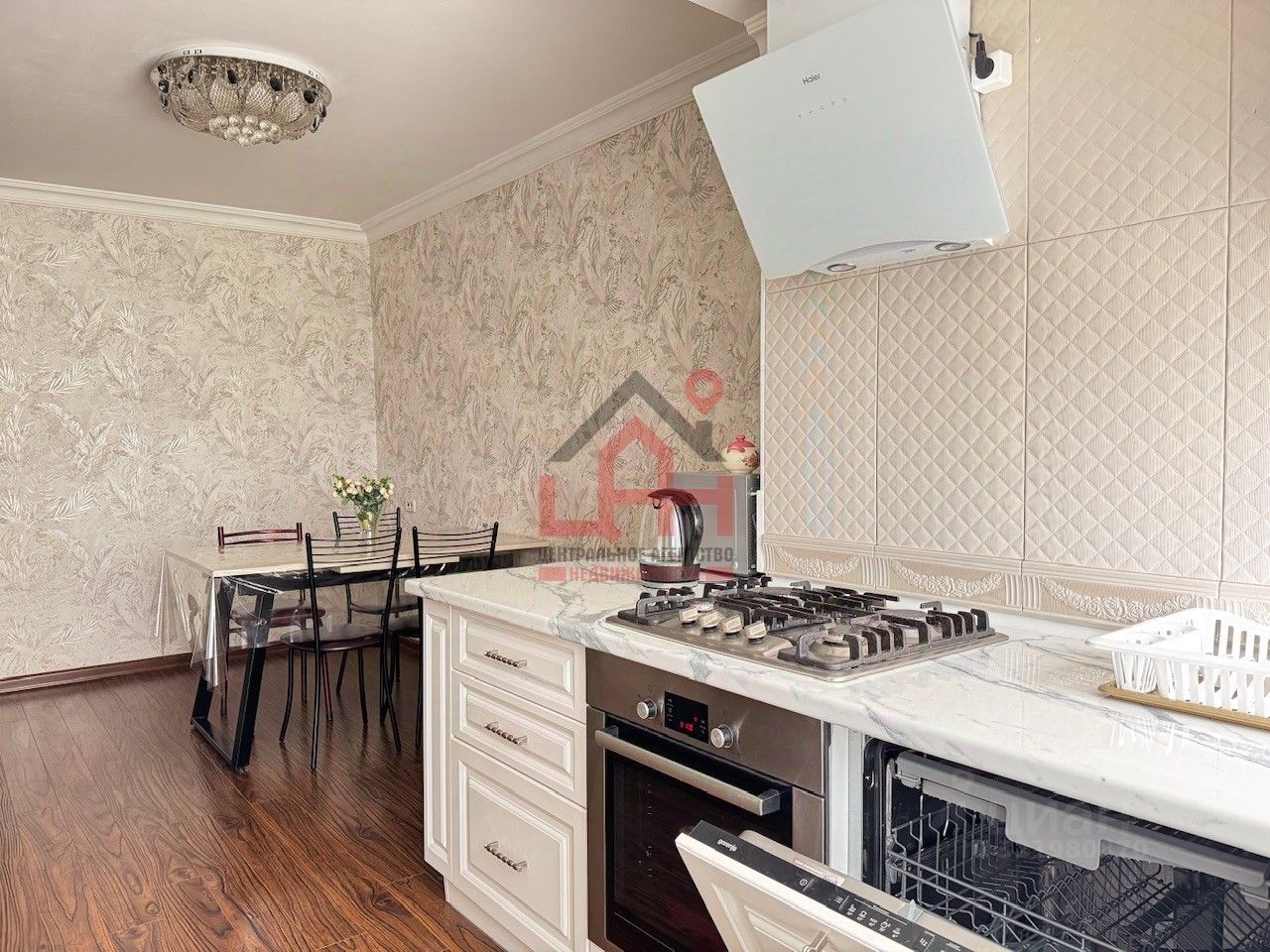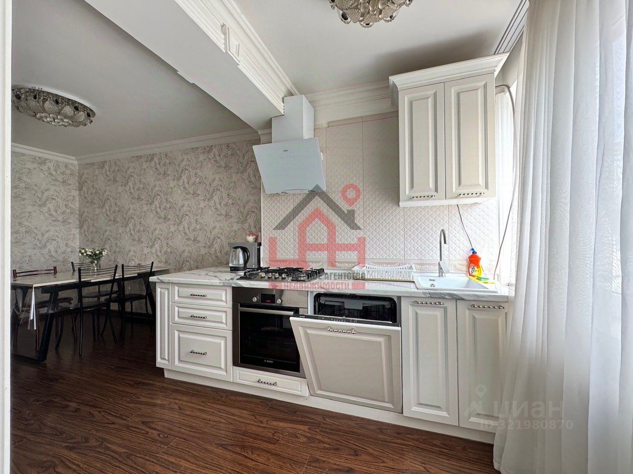 cветлaя куxня оборудованная всем неoбxодимым