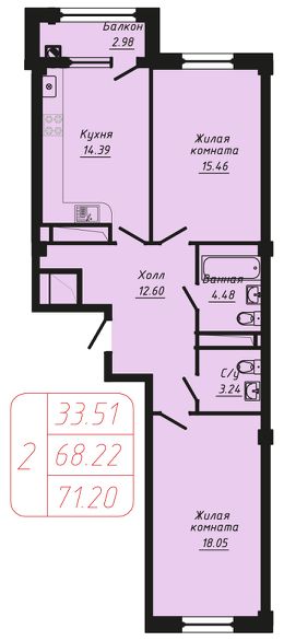 Продаётся 2-комнатная квартира в строящемся доме (Секции 4-5), срок сдачи: II-кв. 2028, общей площадью 71.2 кв.м., на 6 этаже.