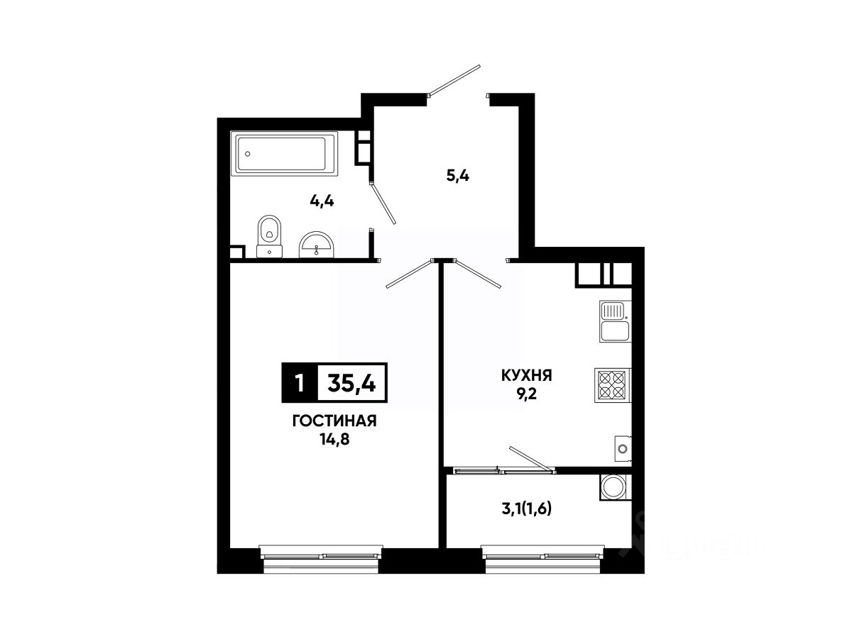Общая площадь35,4 м²