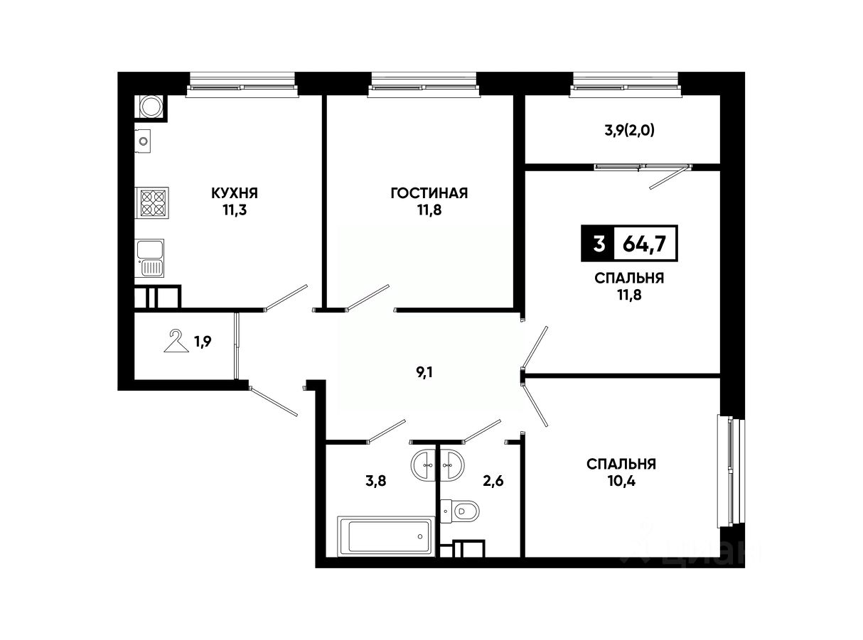 Общая площадь64,7 м²