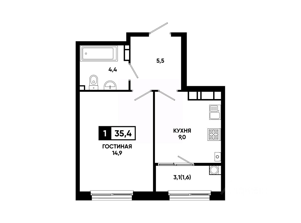 Общая площадь35,4 м²