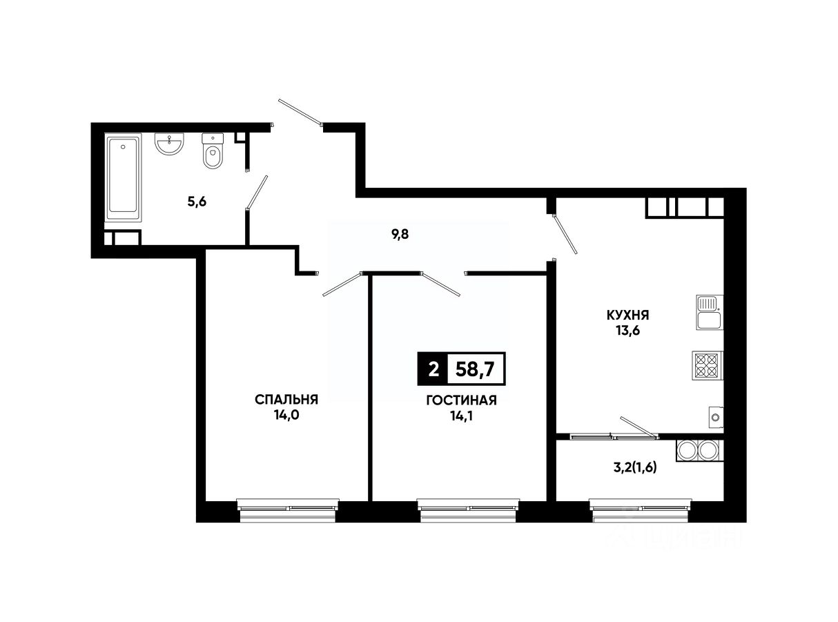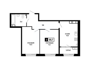 Общая площадь58,7 м²