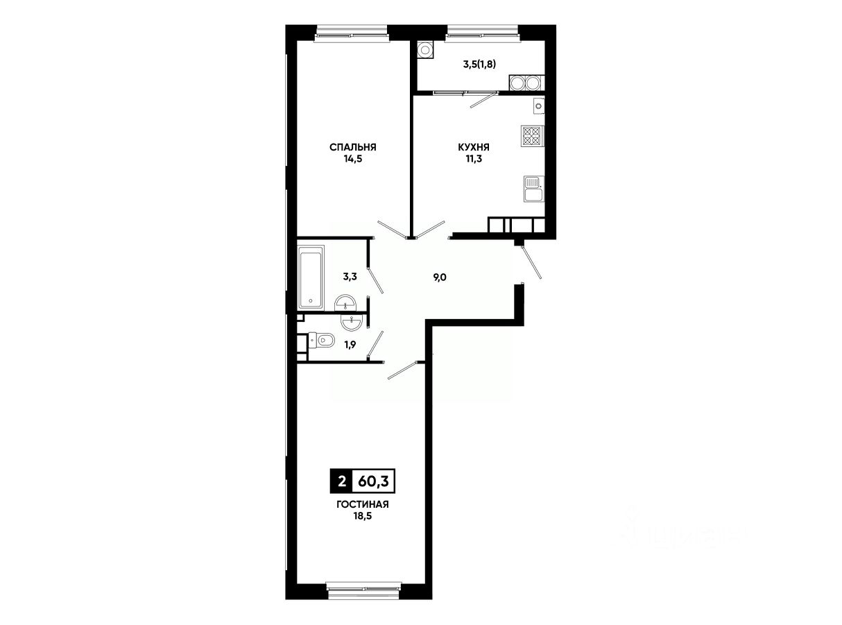 Общая площадь60,3 м²