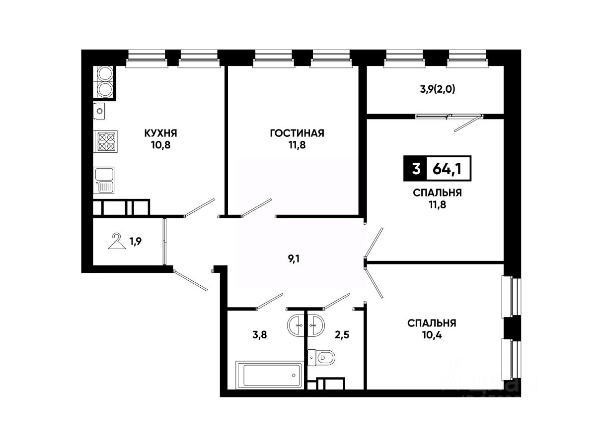 Общая площадь64,1 м²