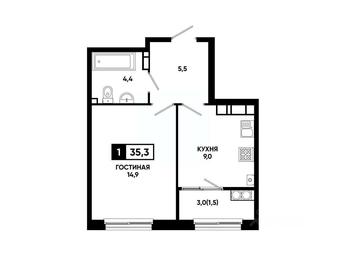 Общая площадь35,3 м²