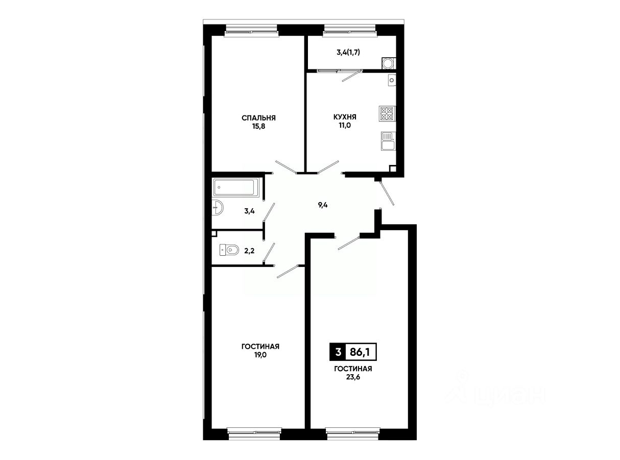 Общая площадь86,1 м²