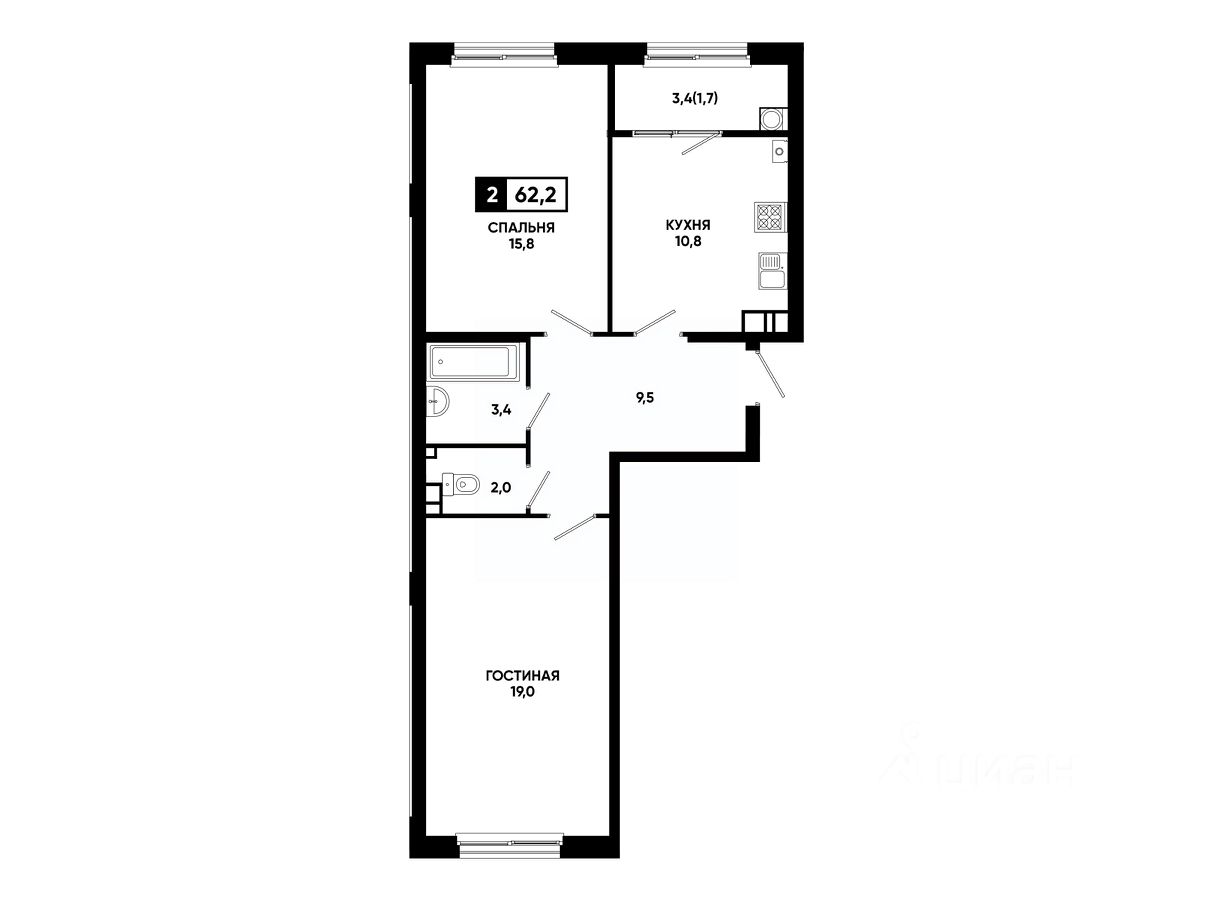 Общая площадь62,2 м²