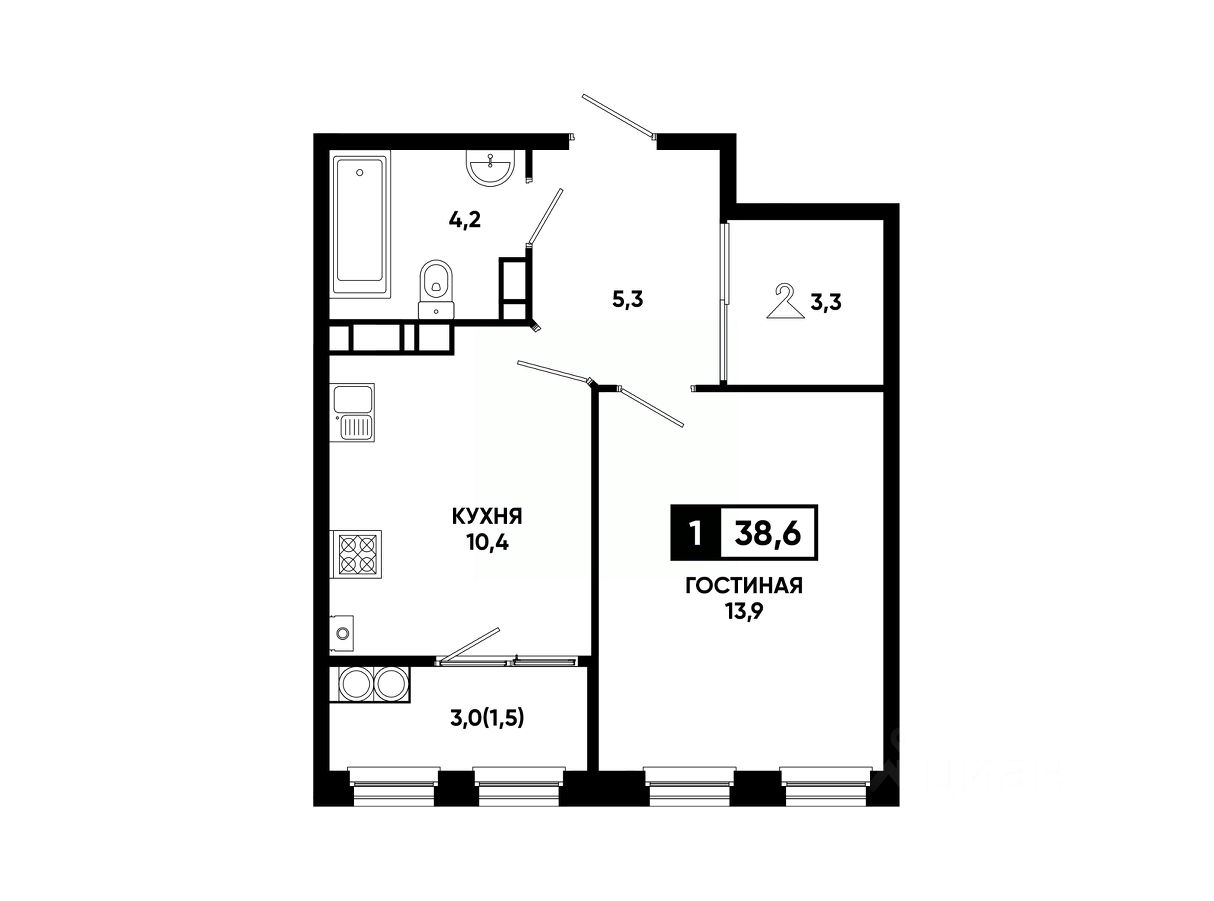 Общая площадь38,6 м²