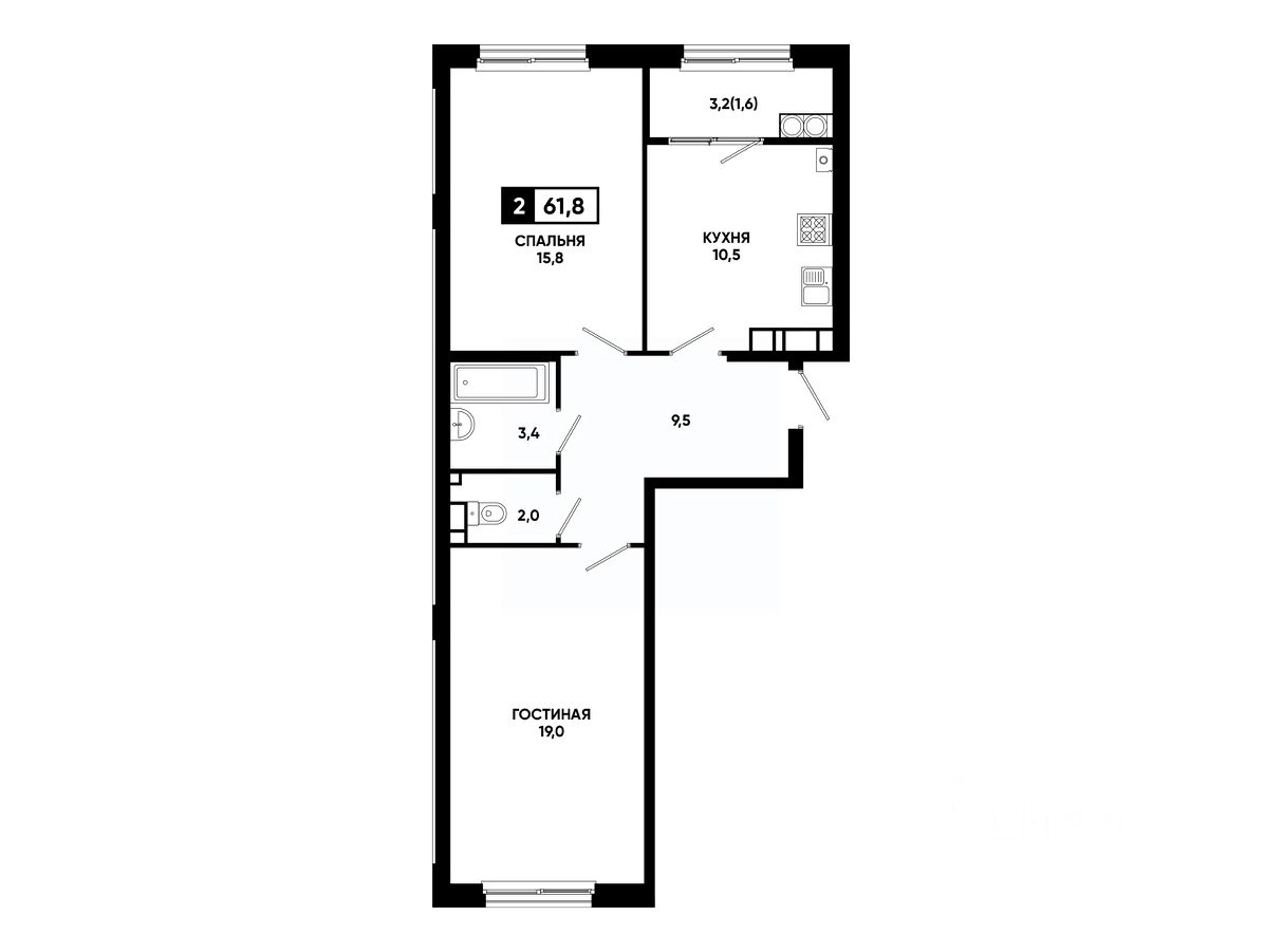 Общая площадь61,8 м²