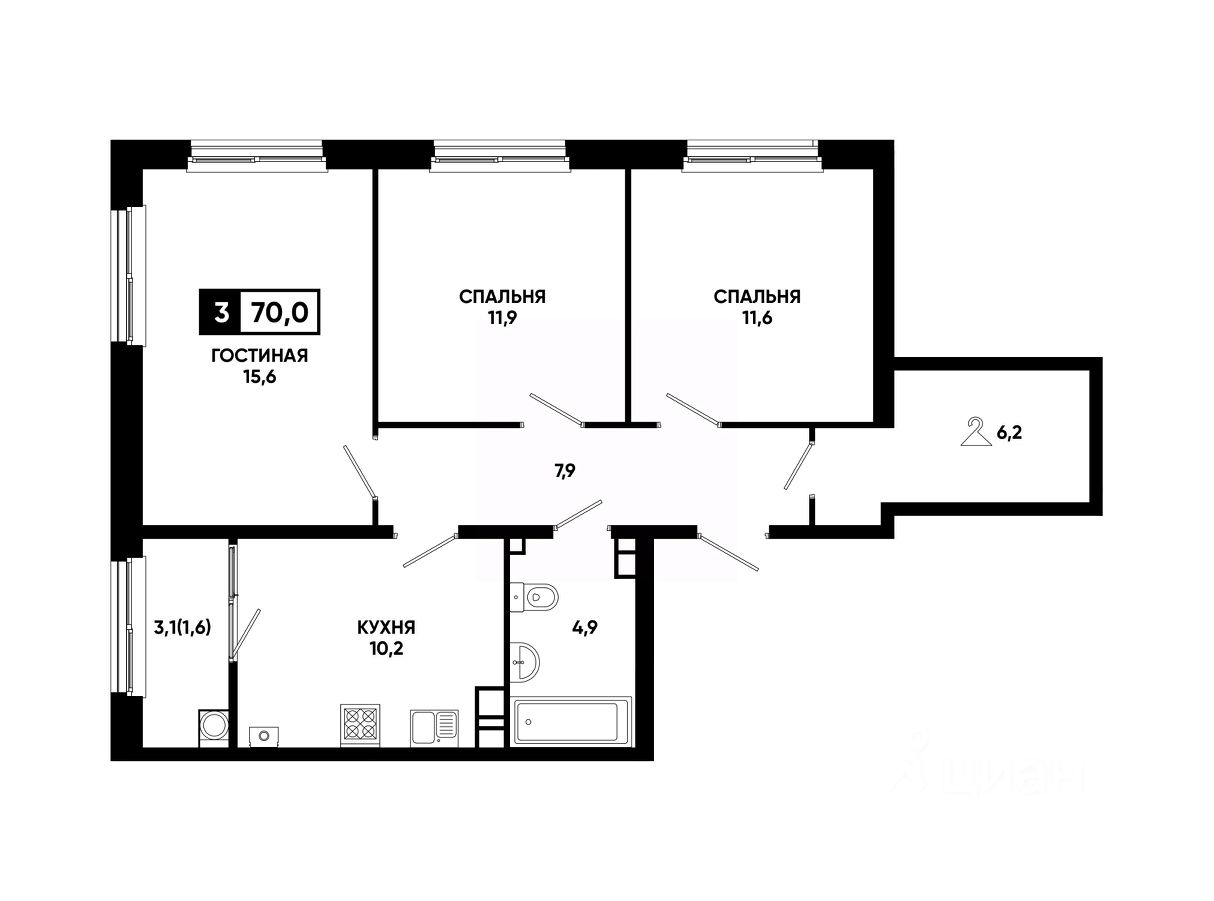 Общая площадь70 м²