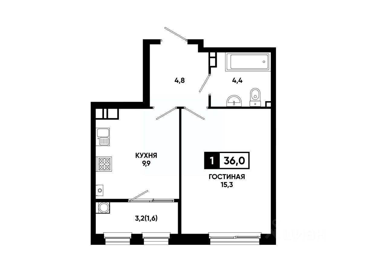 Общая площадь36 м²