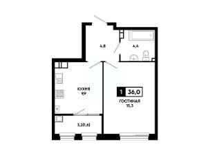 Жилая площадь15,3 м²