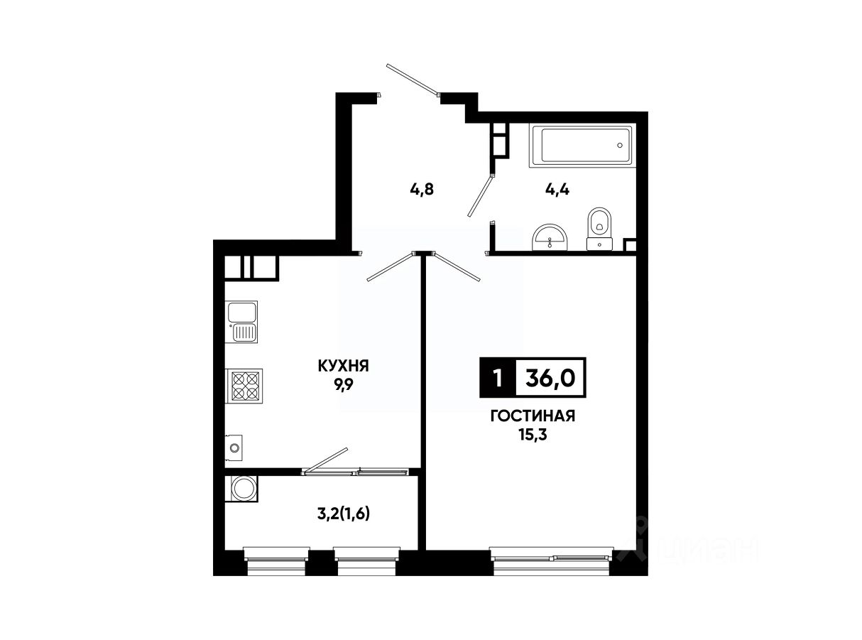 Общая площадь36 м²