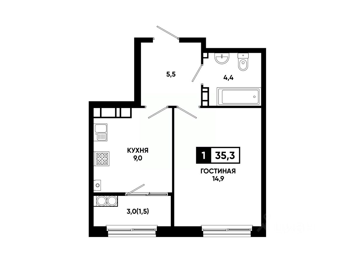 Общая площадь35,3 м²