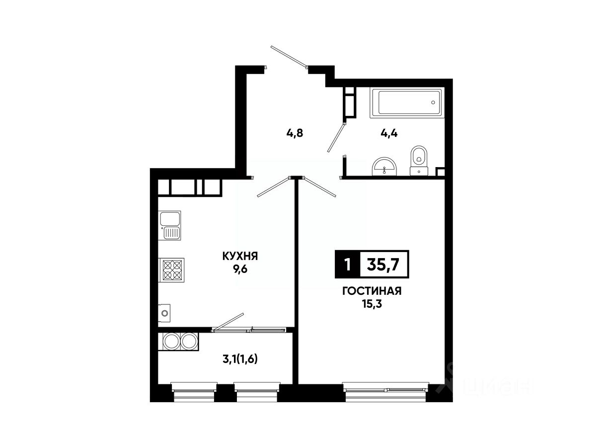Общая площадь35,7 м²
